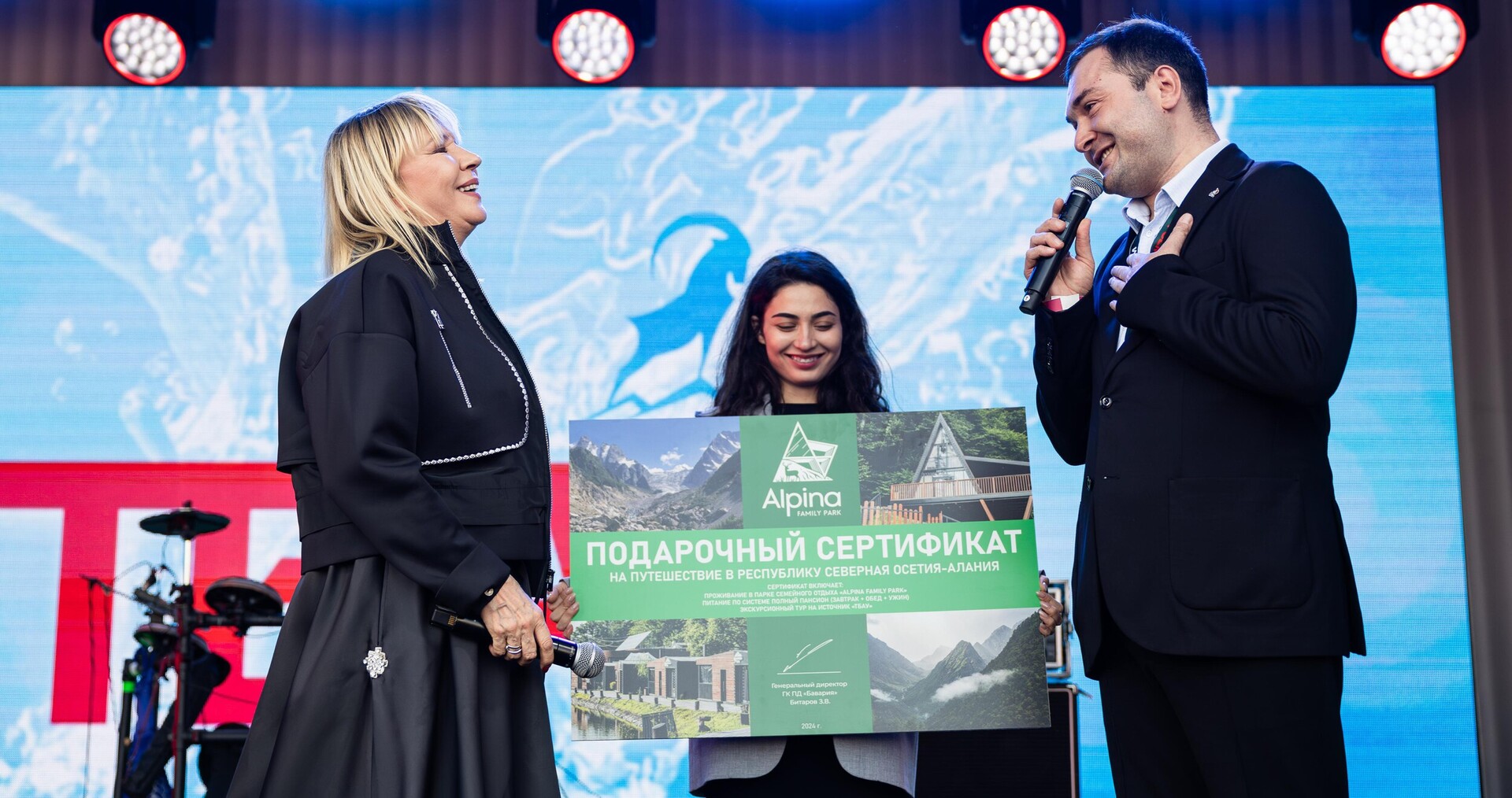 Коммерческий директор ГКПД "Бавария" Заур Абоев вручил сертификаты на путешествие в Северную Осетию и проживание в "Alpina Family Park" представителям музыкальных групп "Uma2rman и "Комбинация". Известные коллективы выступили в рамках матчдэй на РЖД" Арена". Сегодня, 28 сентября, в 10-м туре Российской Премьер-Лиги здесь встретятся московские «Локомотив» и «Спартак».